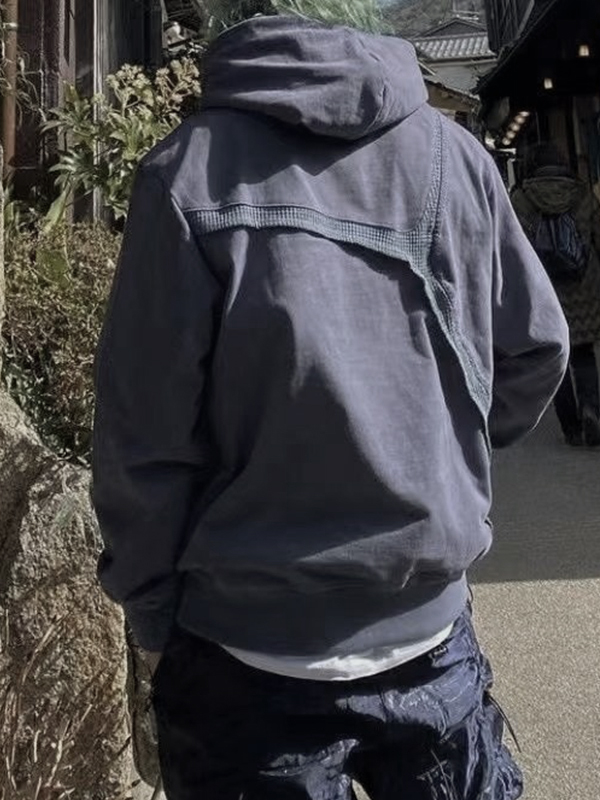 Sudadera con capucha extragrande reversible con empalme de gofre irregular para hombre