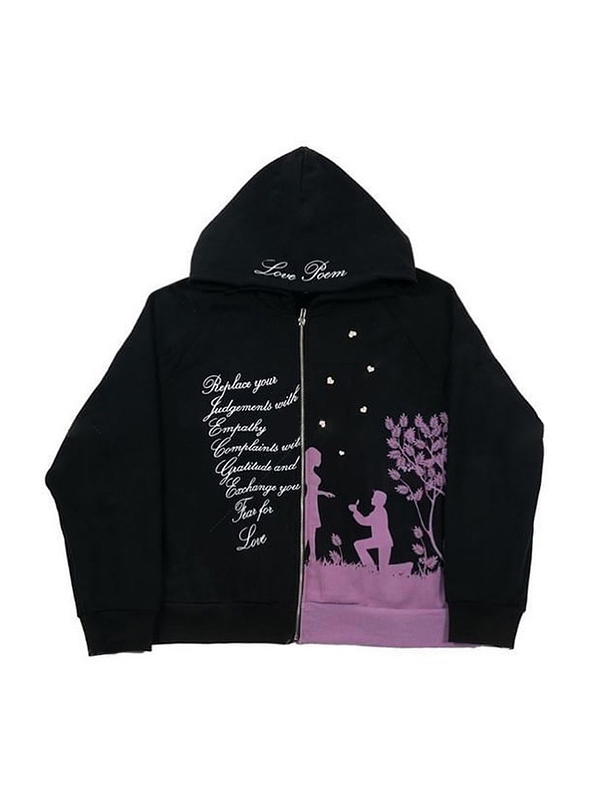 Sudadera con capucha extragrande con estampado de escena romántica para hombre