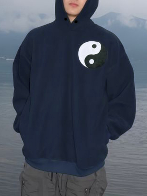 Sudadera con capucha extragrande con estampado de bordado Yin&Yang para hombre