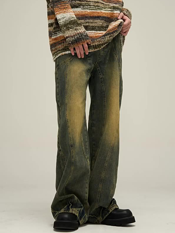Vaqueros de pierna recta con empalme desgastado para hombre
