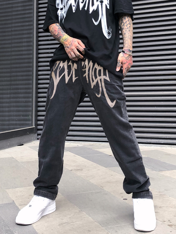 Pantalones anchos con estampado de letras