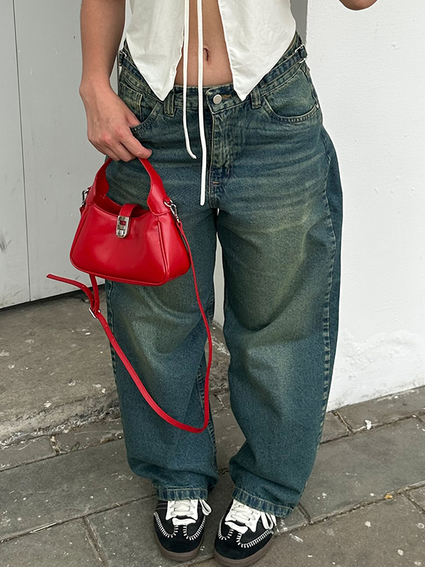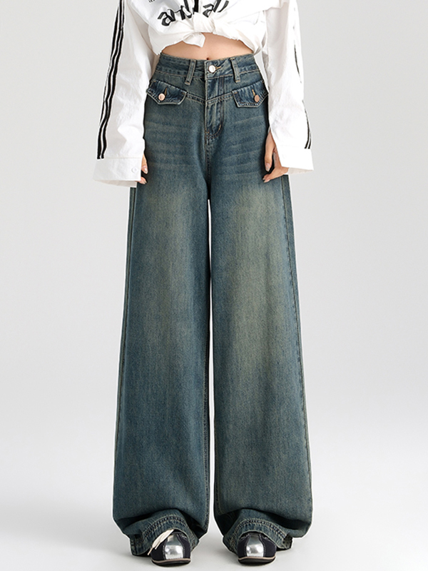 Jeans boyfriend con diseño de bolsillo y pernera ancha drapeada