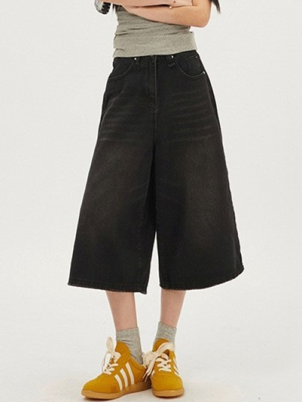Pantalones cortos de mezclilla versátiles de pierna ancha