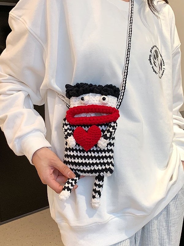 Bolso bandolera de teléfono de dibujos animados de punto de ganchillo hecho a mano