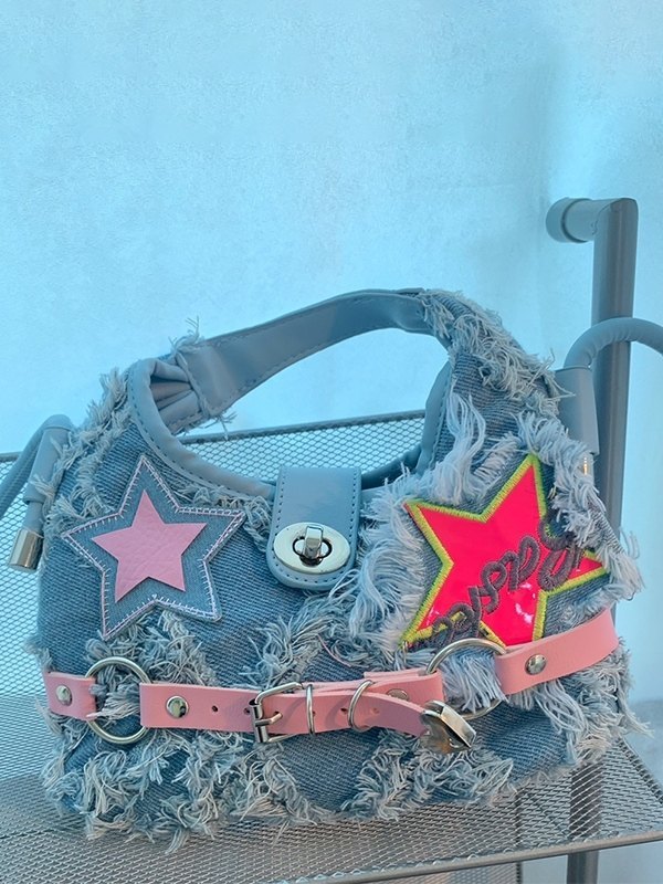 Bandolera vaquera con borde sin rematar y hebilla de estrella