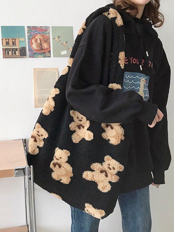 Bolso de hombro de forro polar con motivo de oso