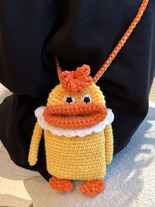 Bolso bandolera de teléfono de dibujos animados de punto de ganchillo hecho a mano