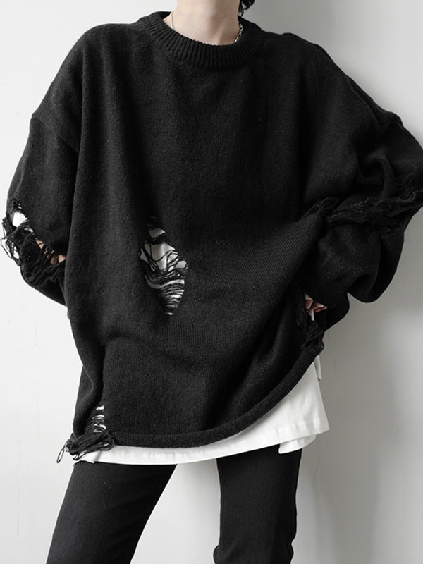 Suéter de hombre con cuello redondo y rasgados lisos