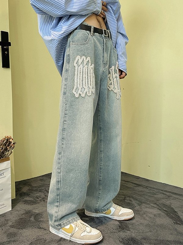 Jeans de pierna recta con letras difusas para hombre