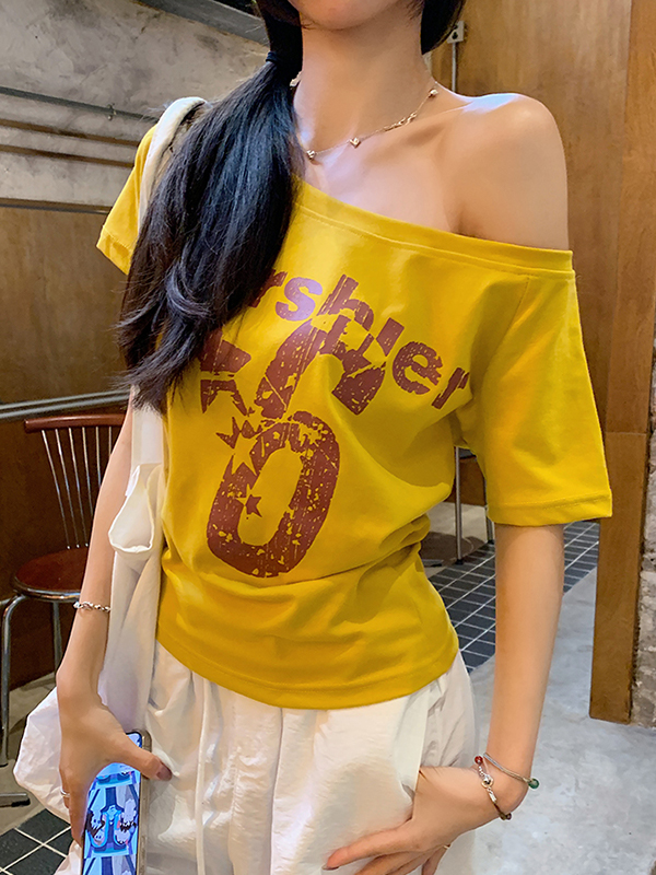 Camiseta de manga corta con un hombro descubierto
