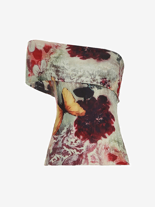 Top de tirantes con estampado vintage de un solo hombro