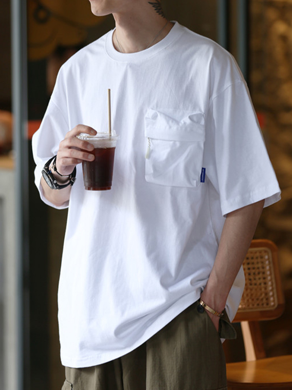 Camiseta extragrande de manga corta con bolsillo liso para hombre