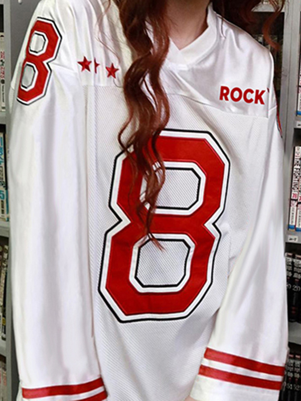 Camiseta de manga larga extragrande con estampado digital de estrellas y cuello en V