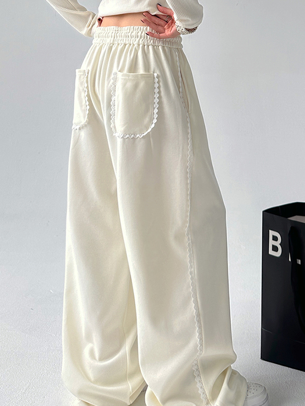 Pantalones anchos con ribete de encaje y retazos