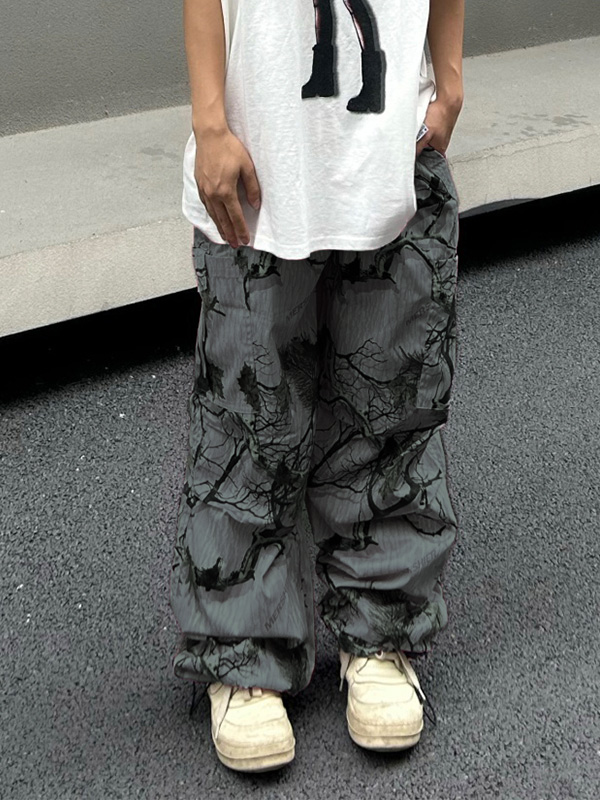 Pantalones de pierna ancha con estampado de grafiti de rama para hombre