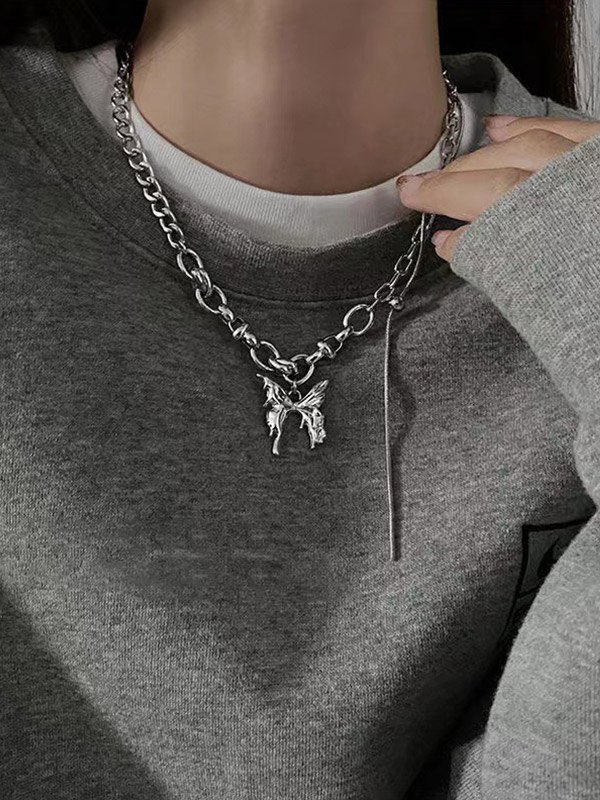 Collar de cadena de eslabones con colgante de mariposa