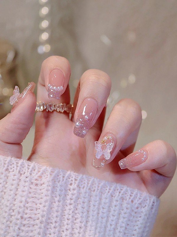24 piezas de prensa de mariposa rosa brillante en las uñas
