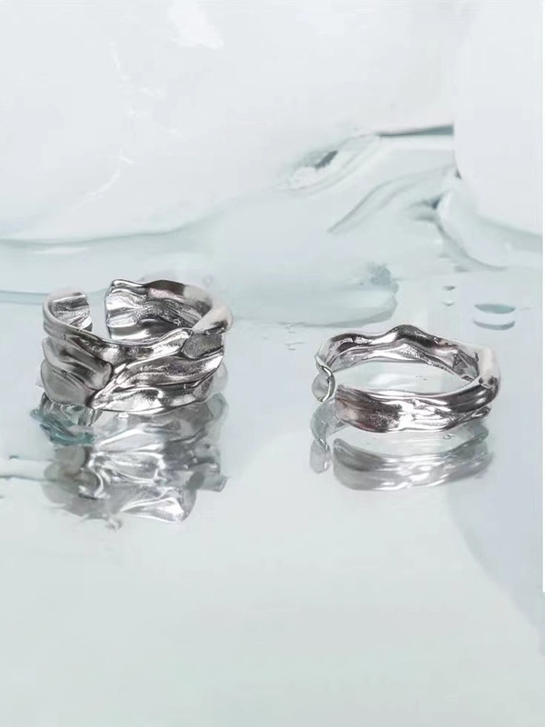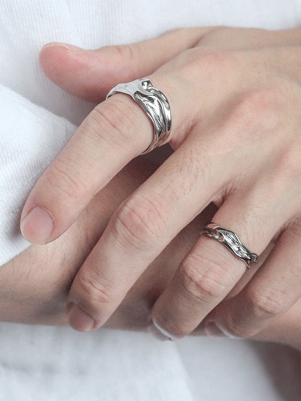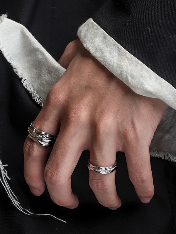 Anillo de puño texturizado plateado de 2 piezas para hombre