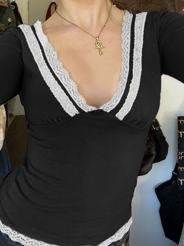 Camiseta de manga larga con costura de encaje