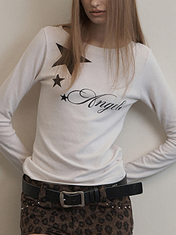 Camiseta de manga larga con estampado de letras de moda