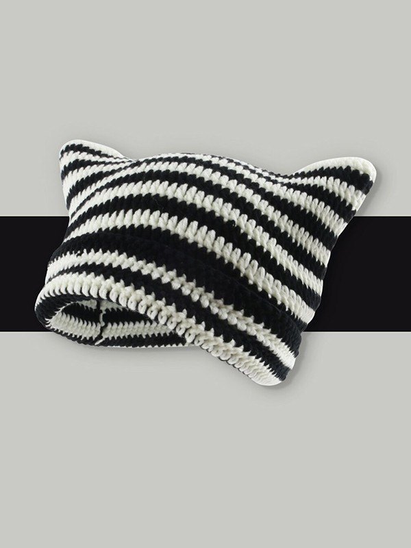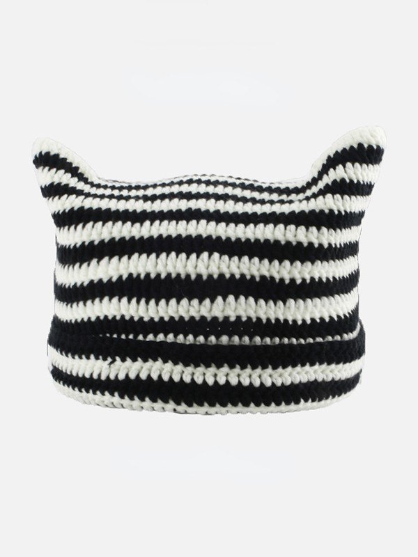 Gorro Beanie con diseño de orejas a rayas en contraste