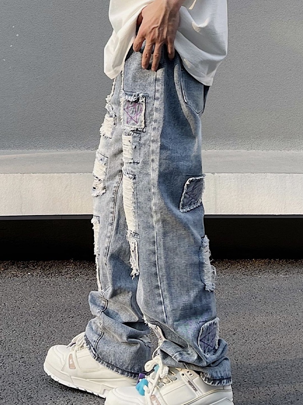 Diseño único: El diseño lavado combinado con el bordado de estrellas moradas ofrece una combinación única de estilo vintage y urbano, lo que lo convierte en un jeans destacado en cualquier guardarropa.