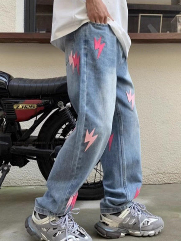 Sé el primero en valorar “Jeans holgados con parches de cuero y rayo para hombre”