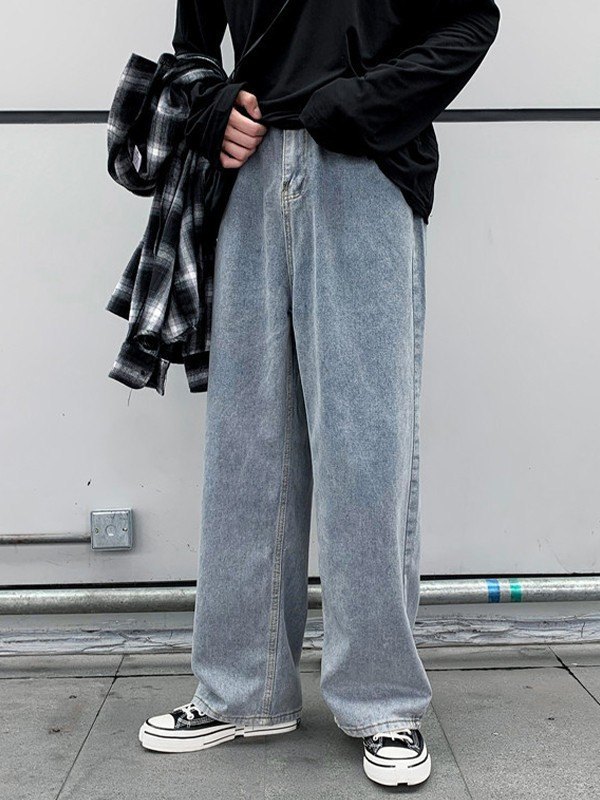 Jeans rectos clásicos lavados para hombre