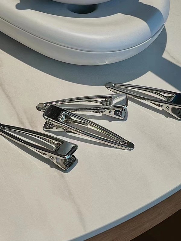 Pinza de pelo a presión plateada hueca