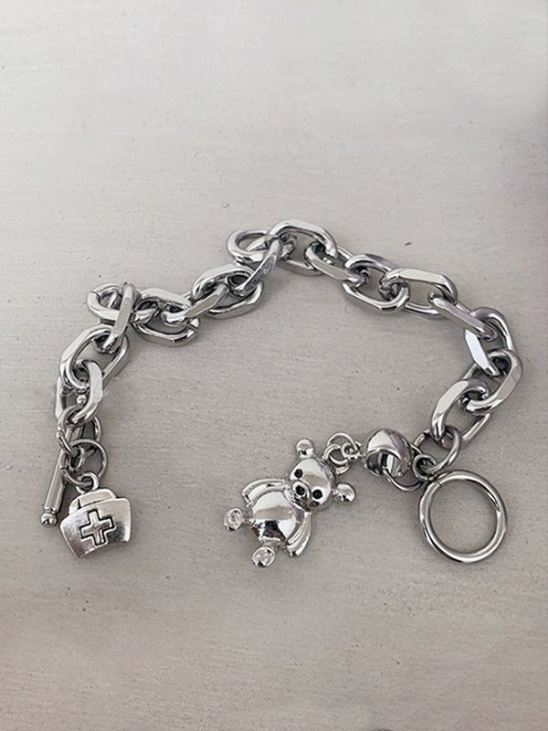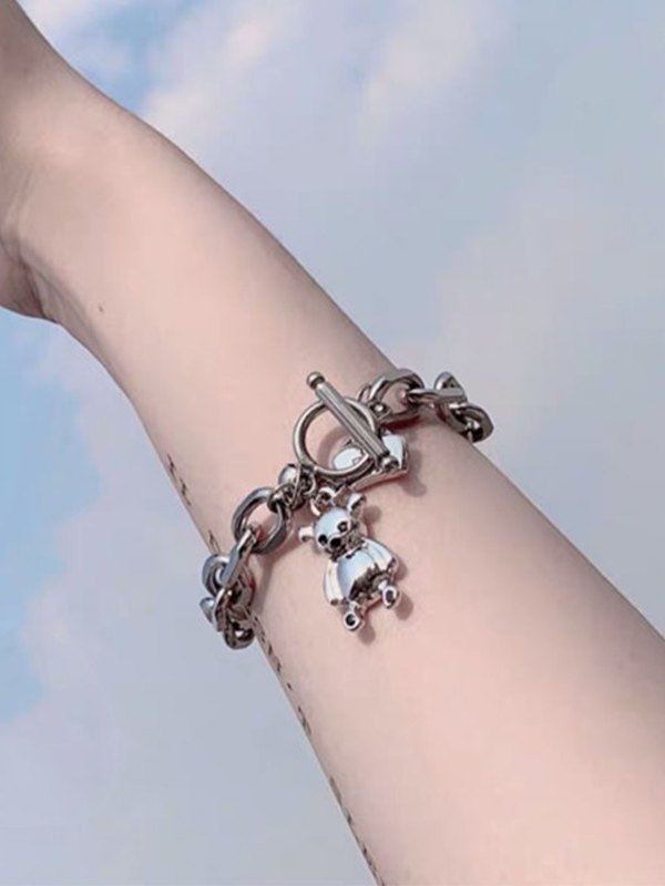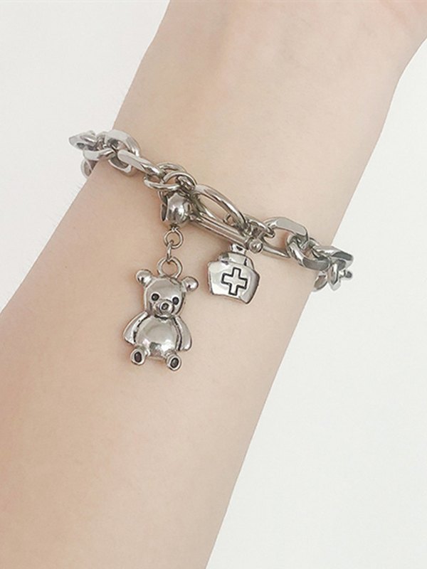 Pulsera de cadena gruesa con colgante de oso