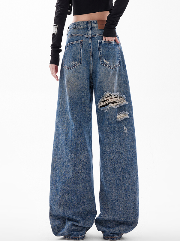 Vaqueros Boyfriend con agujeros estilo retro americano