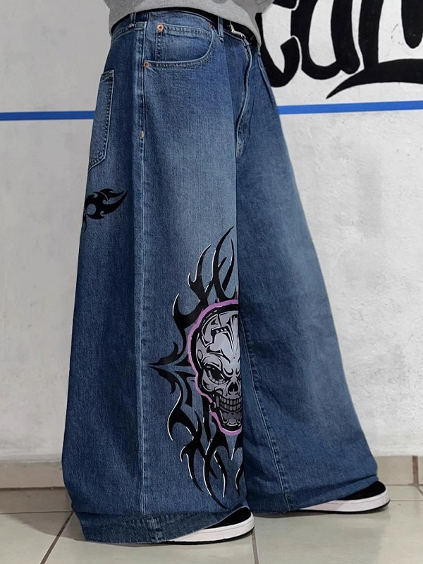 Sé el primero en valorar “Vaqueros boyfriend retro con estampado de calaveras”
