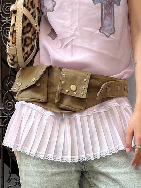 Decoración de remaches marrón vintage con cinturón de bolsillo