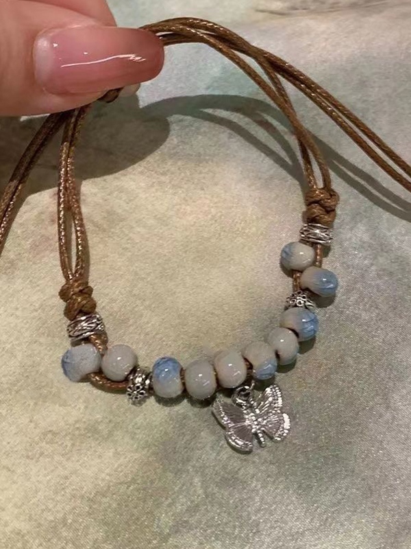 Pulsera trenzada con cuentas de cerámica de mariposa vintage