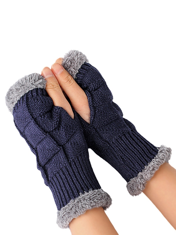Guantes de punto sin dedos gruesos y cálidos con forro polar