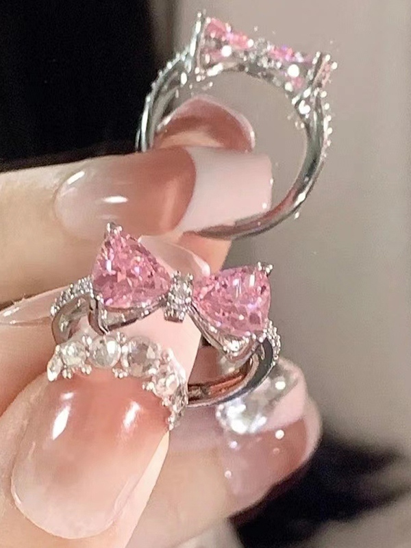 Anillo de puño estilo lazo rosa