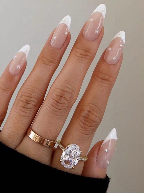 24 uñas postizas blancas con decoración de perlas de imitación.