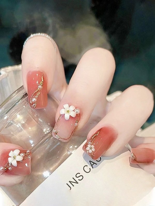 24 piezas de prensa floral de perlas de imitación en las uñas