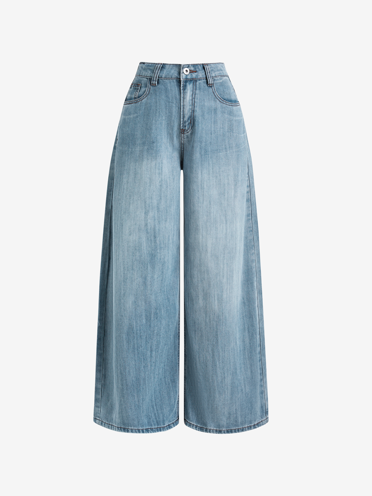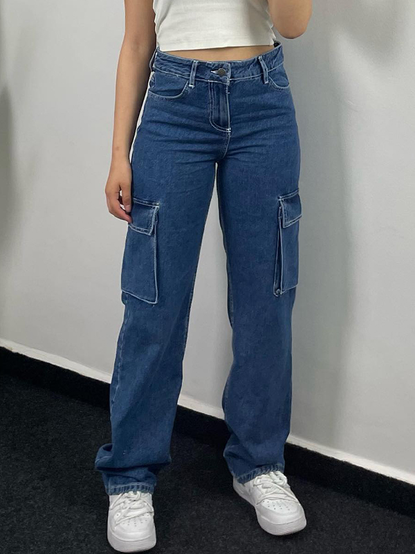 Vaqueros cargo holgados de color azul claro con múltiples bolsillos