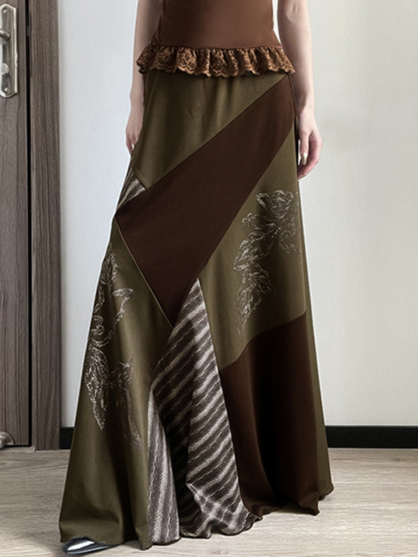 Falda larga de patchwork con estampado Mori