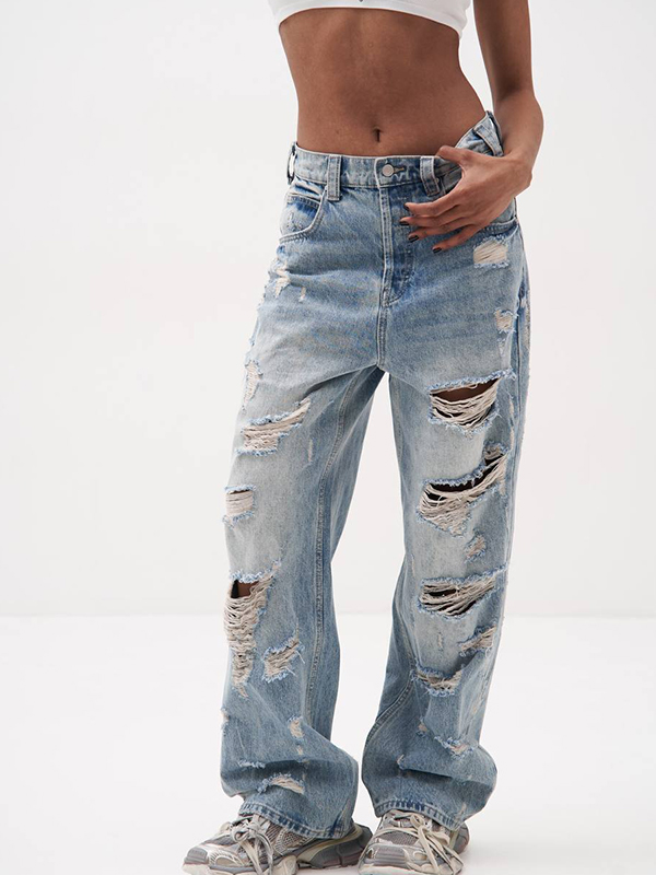Vaqueros Boyfriend con agujeros estilo retro americano