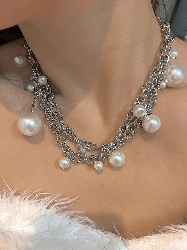 Collar con colgante de perlas de imitación de cadena gruesa