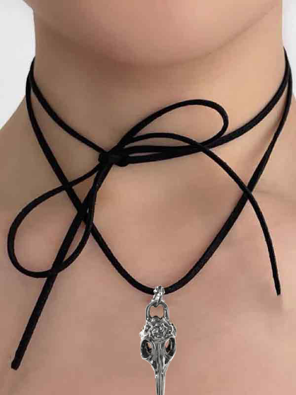 Gargantilla con colgante de calavera con cordones de terciopelo