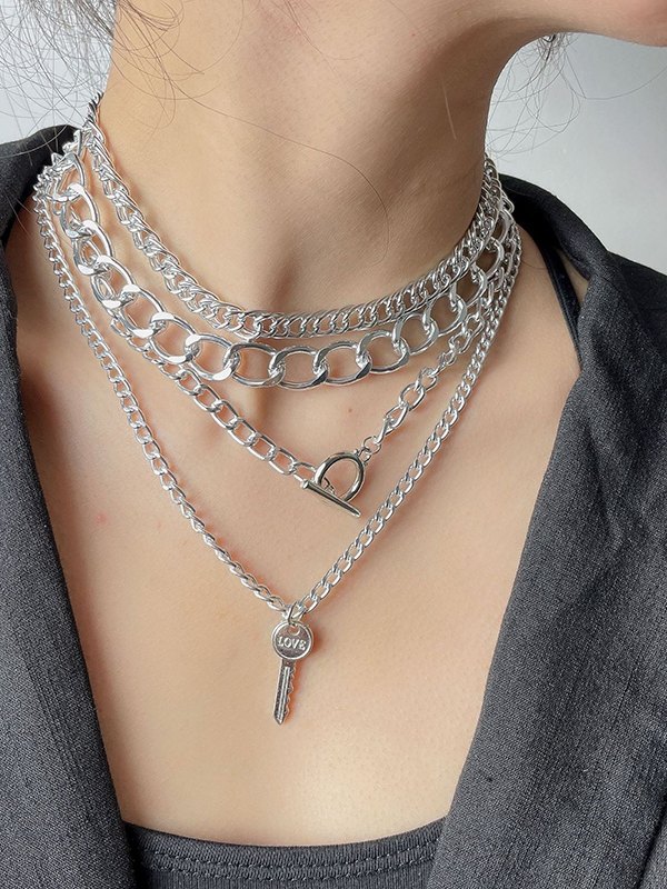 Collar de cadena de eslabones punk de 4 piezas