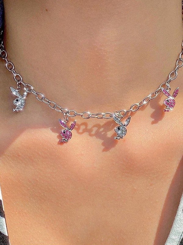 Collar con colgante de conejo de diamantes de imitación