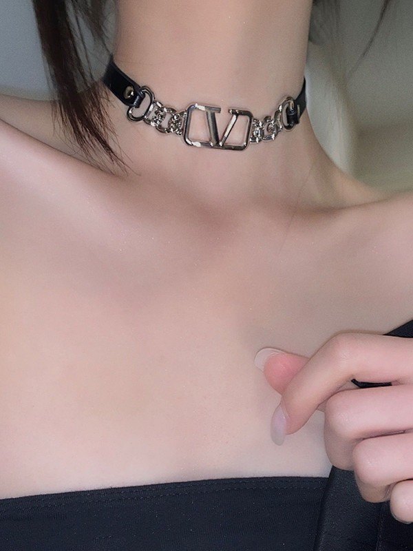 Gargantilla de piel sintética con diseño de logotipo plateado