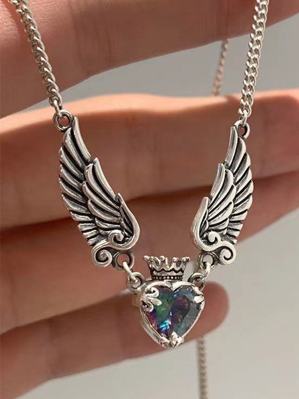 Collar con colgante de corazón de circón alado
