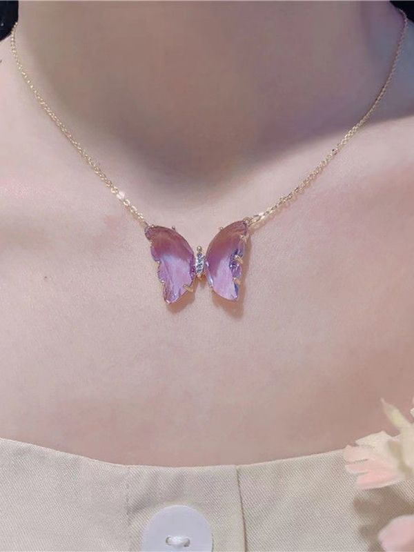 Collar de cadena de eslabones con colgante de mariposa