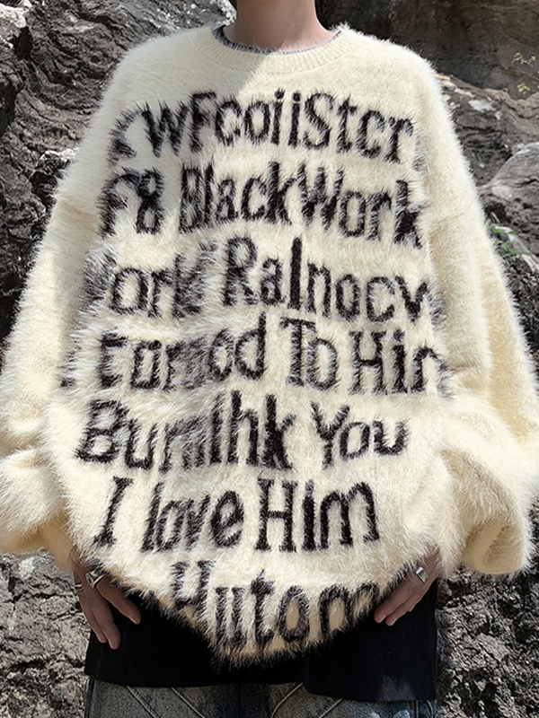 Suéter suelto con cuello redondo y estampado abstracto para hombre