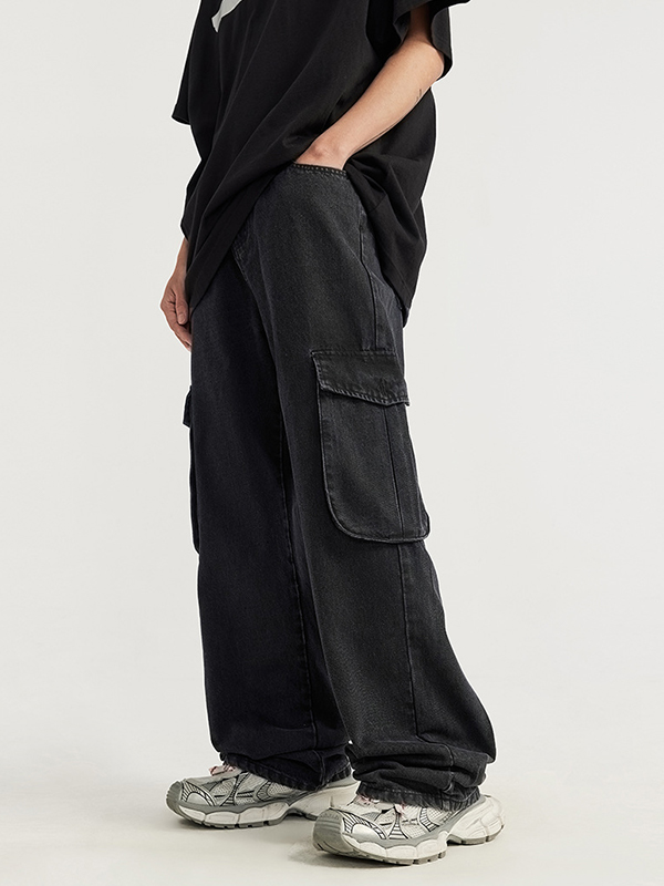 Lavar ropa de trabajo con jeans holgados de pierna ancha